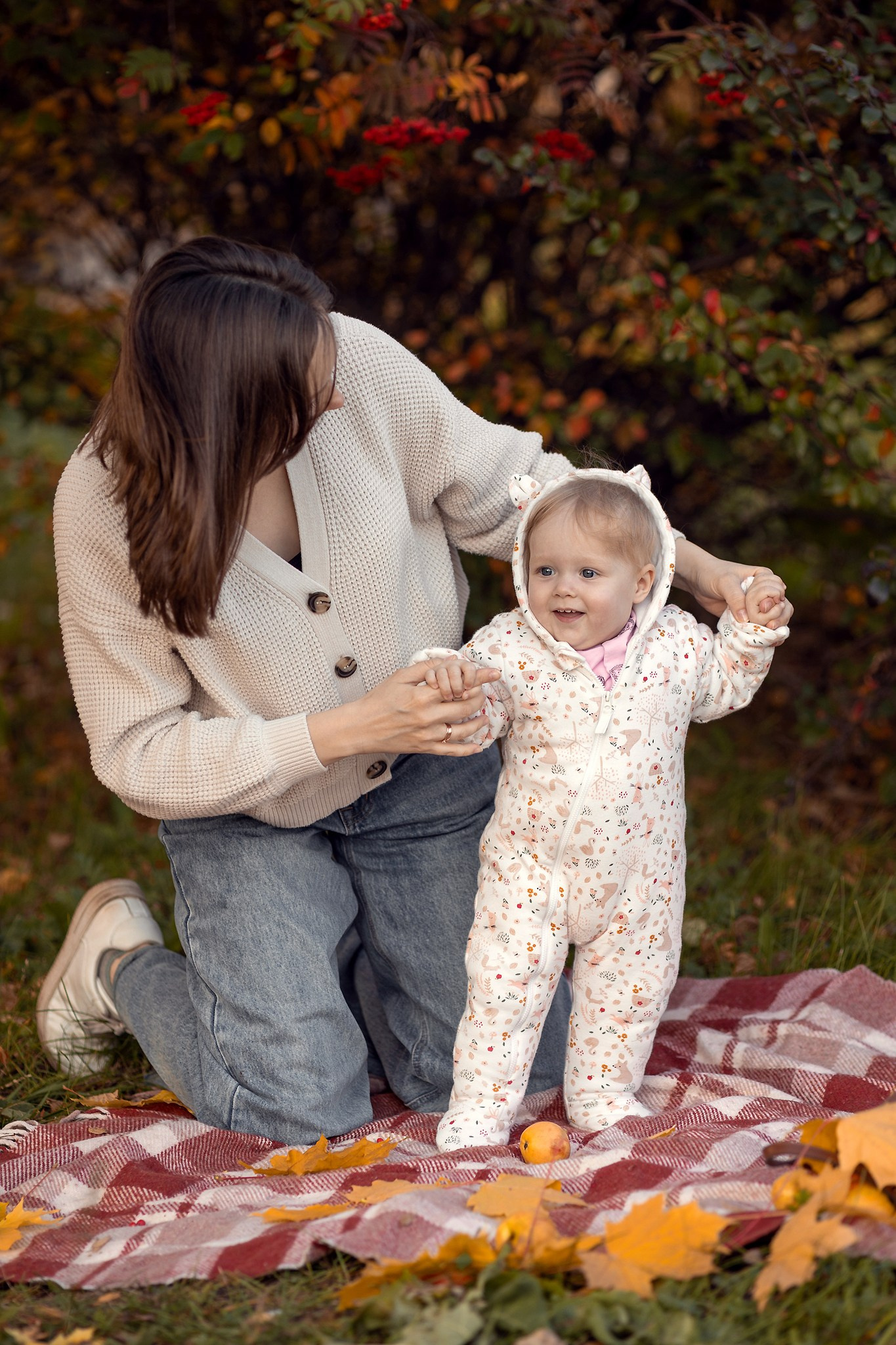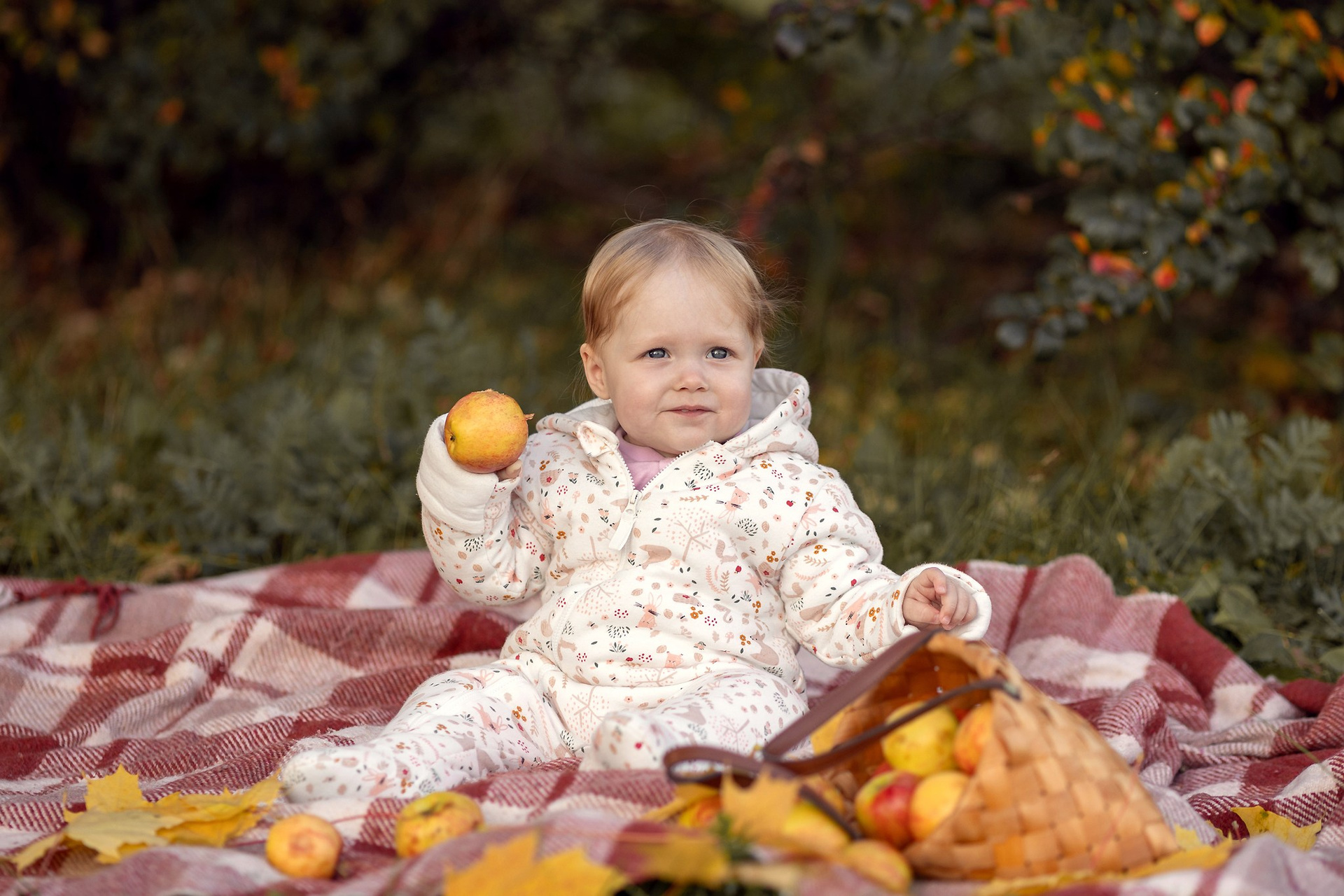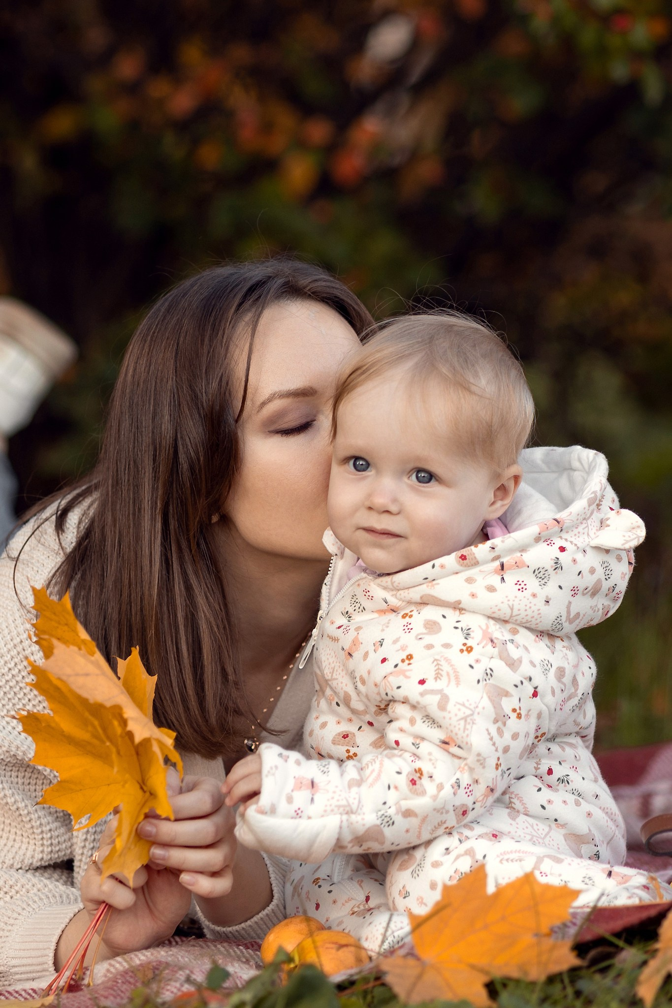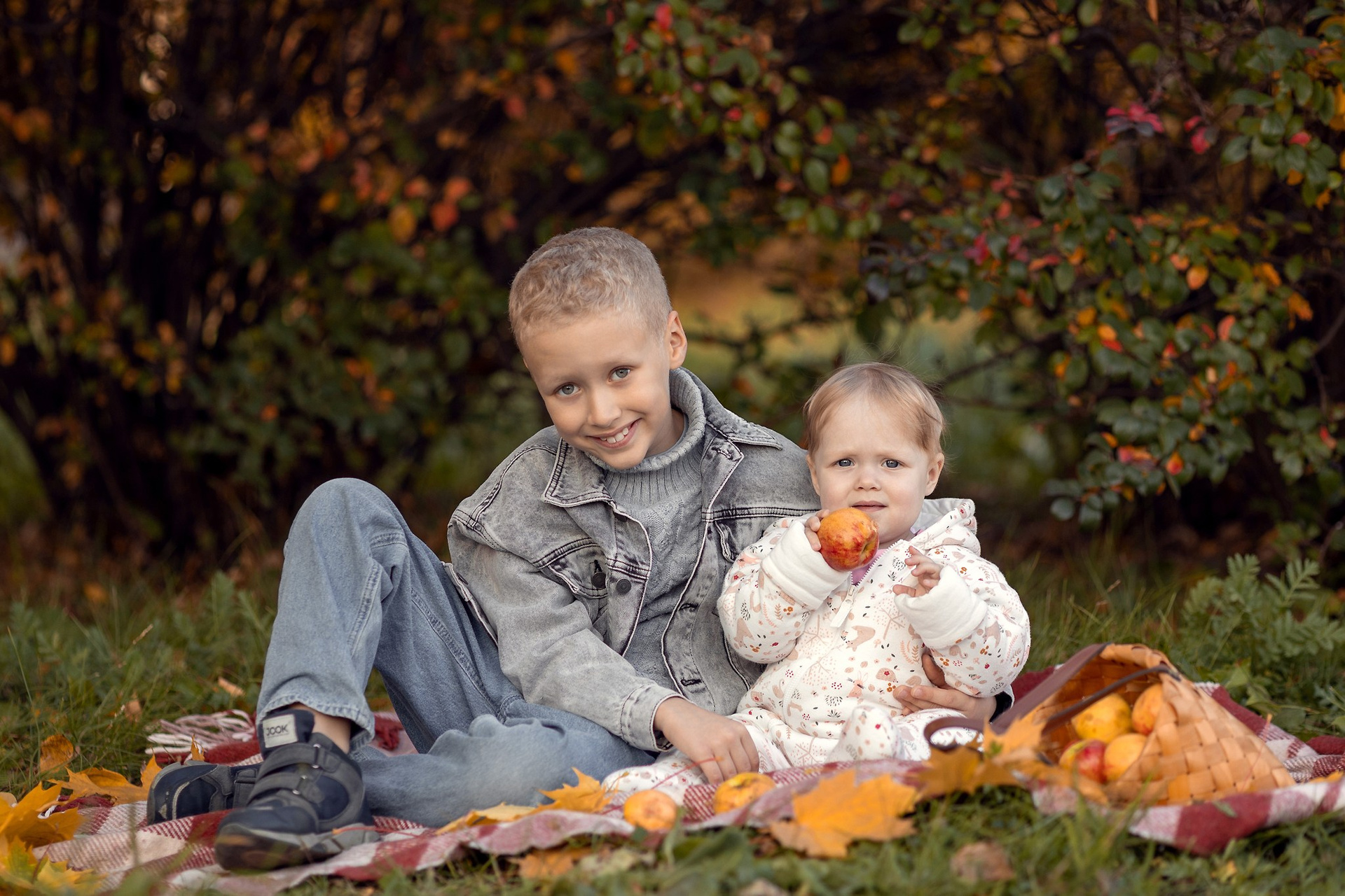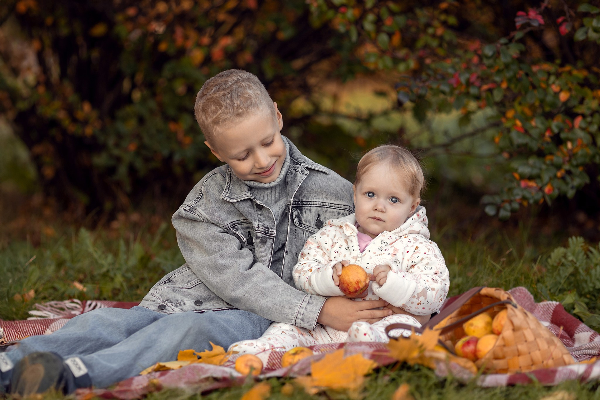 Уютный плед, корзинка с яблочками, кленовый желтые листья — то что нужно для осенней семейной фотосессии. Теплые объятия, нежные поцелуи и искренние улыбки сохраним мы с вами на память!